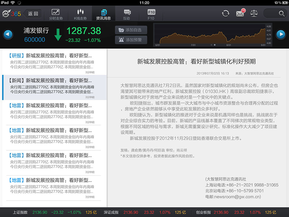 2.自选股信息、股价、涨跌幅、换手率,盘中异动实时提醒